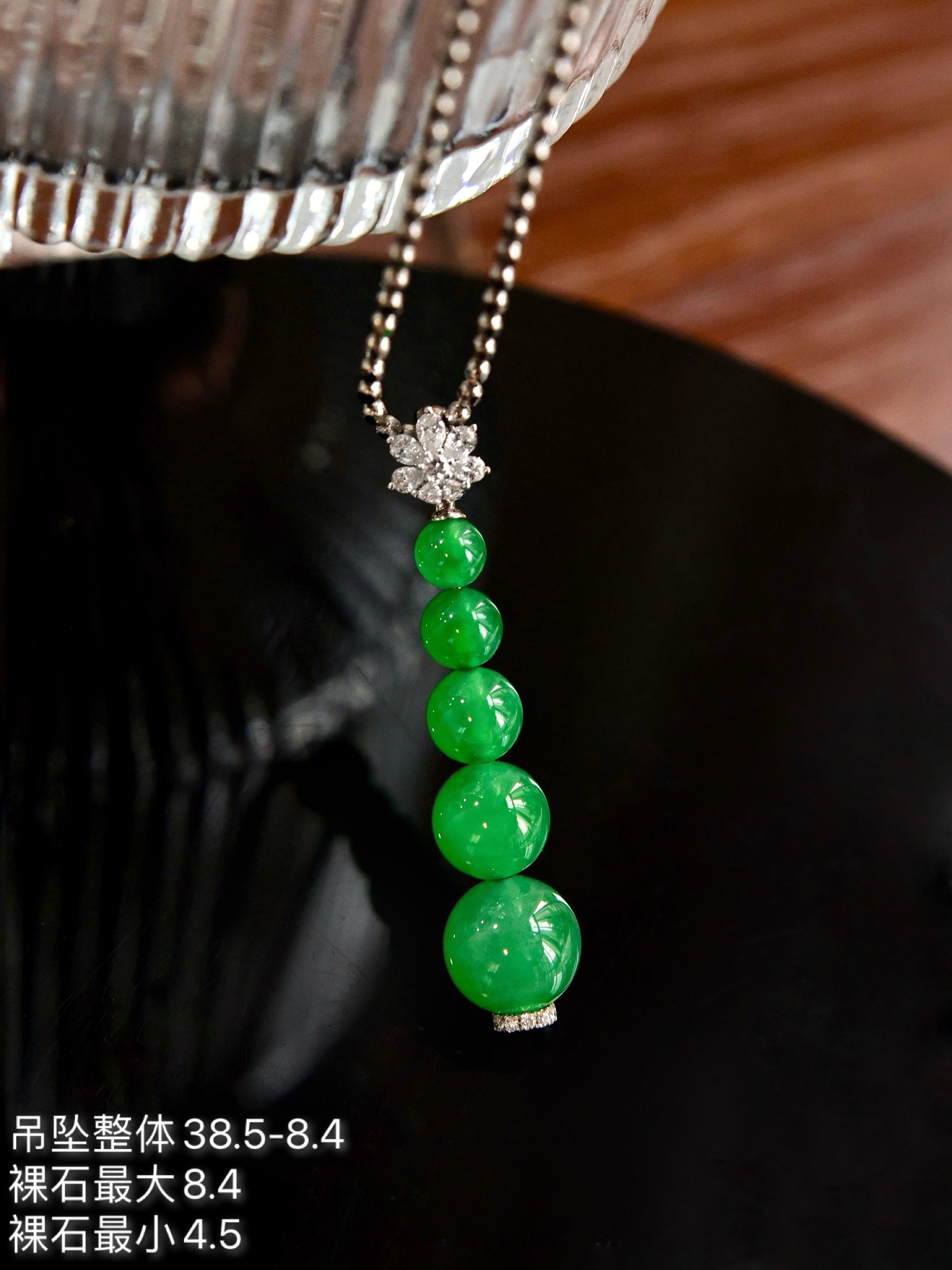 Jade pendant, 18k gold studded with green beads pendant, overall: 38.5-8.4, bare stone maximum: 8.4, minimum: 4.5