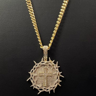 Helloice Iced Crown of Thorns with Cross Medallion Pendant
