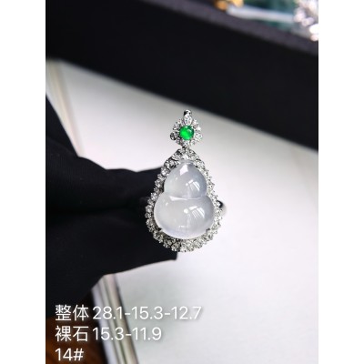 Jade ring, 18k gold inlay gourd ring pendant dual-purpose, overall: 29.5-16.1-13.0, bare stone: 15.3-11.7