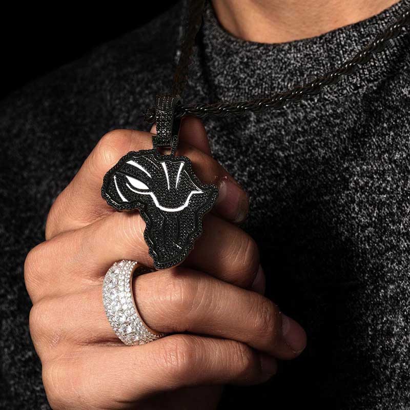 Diamond, 18K white town inlaid diamond town inlaid mirror bull head four claw pendant