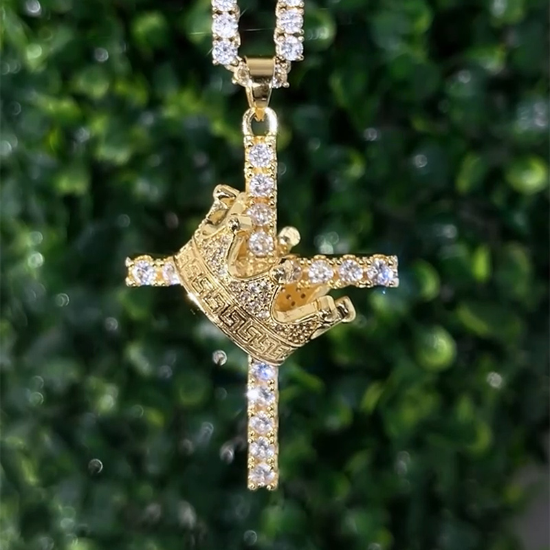 【 Gold Pendant 】 Gold 999.9 Ancient hollow pendant Crowe Heart flower Compass Pendant (including beads)